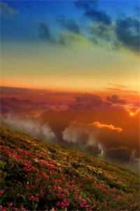 黄昏的落日。